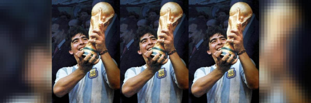 Diego maradona dribbles, the world watches.